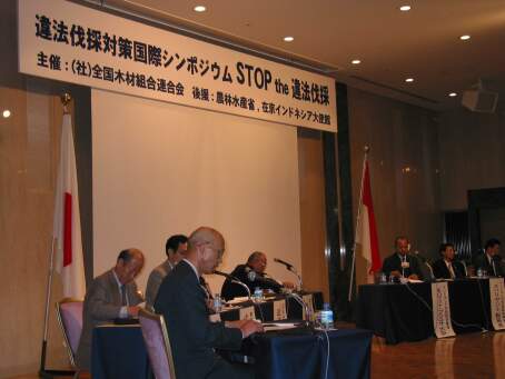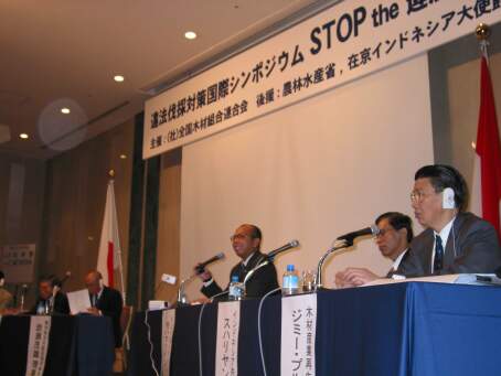 全木連は、去る2003(平成15)年6月24日(火)に東京・赤坂プリンスホテル「新緑の間」において、インドネシア共和国モハマッド・プラコサ林業大臣をスピーカーに迎え、違法伐採対策国際シンポジウム「STOP the 違法伐採」を開催しました。 シンポジウムでは、この問題に対するインドネシア政府の対策や、輸入国への要望などについて意見交換を行いました。このシンポジウムは、同日おこなわれた日本・インドネシア共和国の森林違法伐採に対するアクションプログラムと共同発表に先立ち、開催されたものです。 冒頭のプラコサ林業大臣による基調講演では、インドネシア政府がこの問題に対し大変積極的に取り組んでいくことが、わかりやすく詳細にわたって紹介されました。また、シンポジウム後半は、日本の木材業界(南洋材製材業界、合板業界)、NGO、国際機関等からの出席者による活発な意見が交わされました。 大変急な開催決定にもかかわらず、約150名の方が来場され、会場は立ち見もでて熱気に包まれ、この問題に関する関心の高さがあらためて感じられました。 ご協力いただきました、皆様に御礼申し上げます。