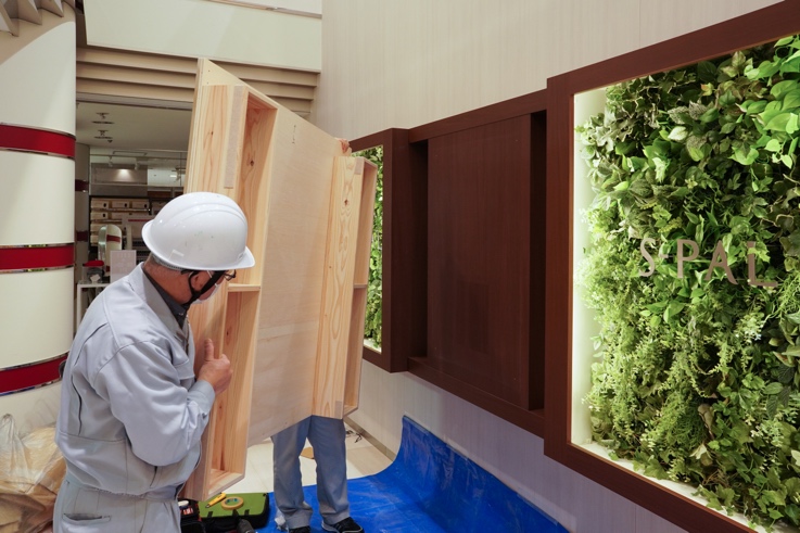 事業の目的・理念に共感し、今後の事業協力が期待できる商業施設として3箇所を選定、また南会津町においては人流の拠点となる役場庁舎に設置した。エスパル郡山/福島は菱形マジックのプロダクトデザイナーである澤山氏に両施設にマッチしたアートデザインを提案して頂いた。また、星の郷ホテルはホテル全体のアートワークを担当したラボット・プランナー㍿にアートデザインの依頼を行なった。事前に施設のコンセプトや雰囲気、利用顧客といった全体性を丁寧にヒアリング・調査したことで、パネルデザインに反映することができた。各所の担当者からの反響は大きく、「施設の見栄えが大きく変わった!」「木材の魅力を感じることができた」などの好意見を頂けた。今後も継続的に利用者からの意見や反応を収集していく計画である。