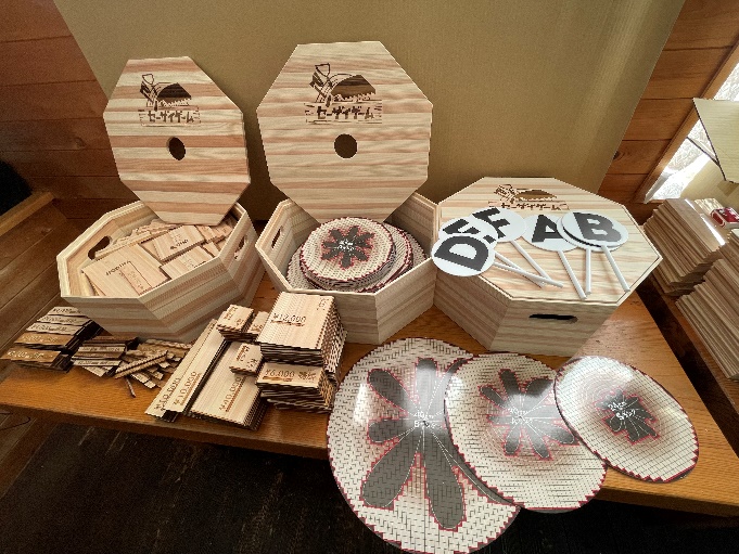 セーザイゲームのバランス等再調整であり、ゲーム会社によるプロ目線での修正が入ったことによって、ゲームの本質的な内容にストレスなくプレイヤー(受講者)がアクセスできるようになった。特に、道具類のデザイン刷新によりルールがより直感的に把握できるようになり、事前のルール説明等にかかる時間を短縮することができ、限られた時間の中で実施する教育プログラムにおいて、重要な学びの時間を長くとることができるようになった。事業②「高品質木材を使用したセーザイゲームキットや補助教材の開発」