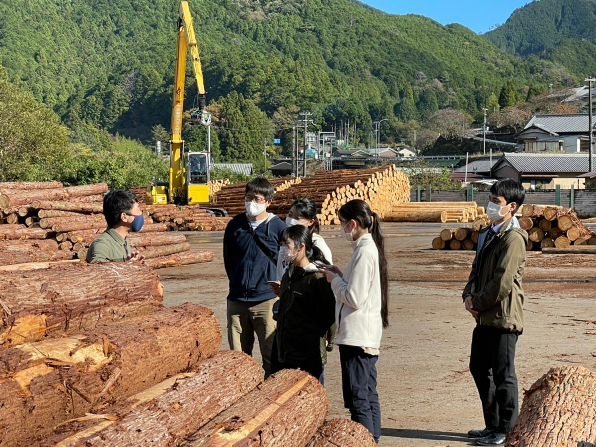 | モデル講習・調査の実施-1(新渡戸文化高校) 1 開催日 / 11月10日 2 参加者 / 熊野林星会3名 三重大学 山本康介助教授 3 対象者 / 新渡戸文化高校(東京都中野区本町6-38-1) 学生3名と先生1名、引率者1名(計5名) 4 開催場所/ レンタルスペースきのもり、原木市場、 野地木材工業(製材所) 5 内容/モデル講習の実施①座学 ②セーザイゲーム ③見学 |