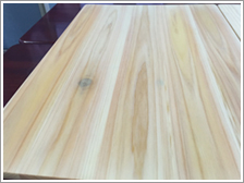 既存品のメラミン化粧合板の表面硬さを上回る事は出来なかった。無処理材に比べ凹み量で大幅な表面硬さの向上が見られ。メラミン化粧板は耐摩耗性試験において200回転で木目が消失したのに対し、試作品は塗膜や一部木部も削り取られたが木目が消える事は無く、その辺りを差別化して商品展開していけることがわかった。