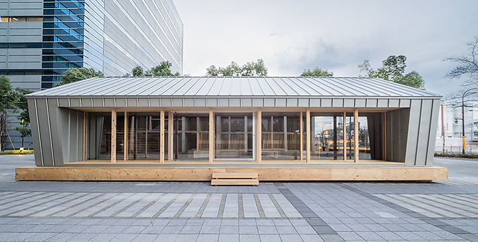 木材業界をはじめ、建築関係者にも大きな関心がもたれ、多くの見学者が来訪している「木材会館」に隣接した公開空地において、街の様々な場所で展開できる地域木材を用いた仮設の展示用プロトタイプを設置することで、住宅市場だけに捉われない、新たな木材需要を生み出している。